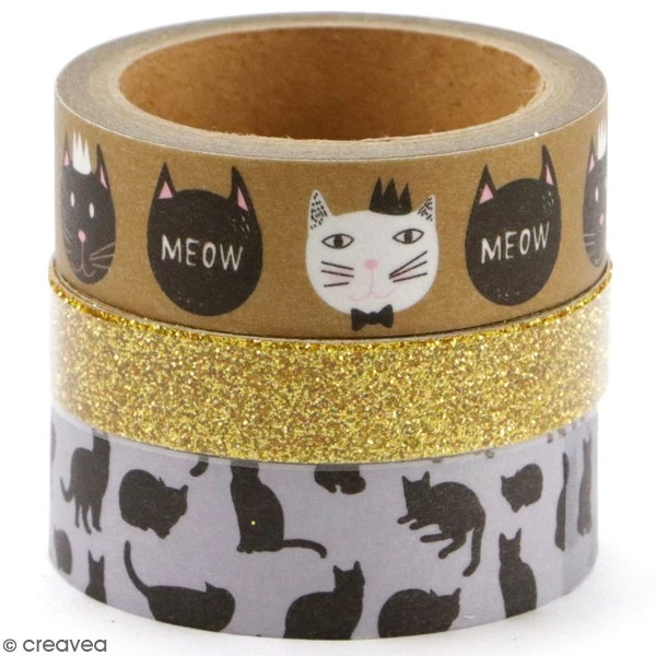 Description de Set de masking tape – Chat – 1 cm et 2 cm – 3 pcs