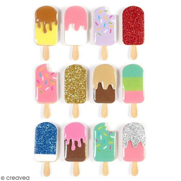 Planche contenant 12 autocollants 3D sur le thème Batonnet de glace.