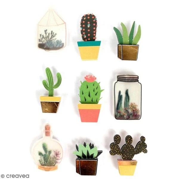 Planche contenant 9 autocollants 3D sur le thème Cactus.