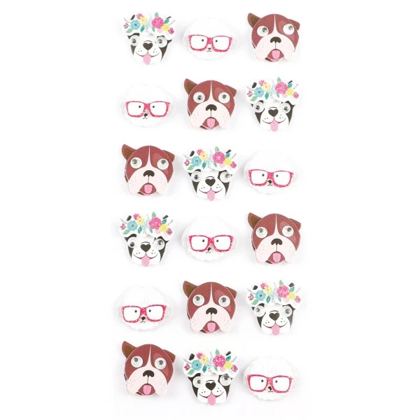 Découvrez cette planche de 18 stickers 3D Chien qui seront parfait pour tous vos projets de scrapbooking, carterie ou décoration !