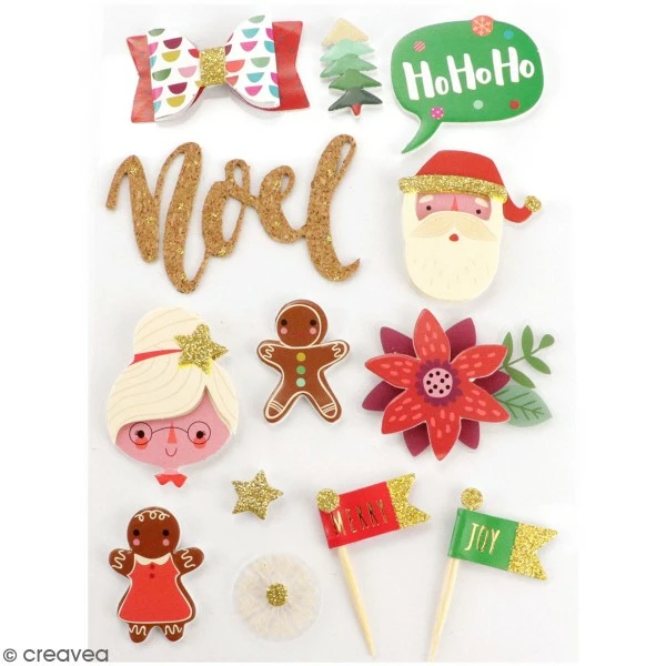 Planche de 13 stickers en 3D sur le thème de Noël à coller sur tous vos projets de scrapbooking, vos cartes de vux et toutes vos idées de DIY.