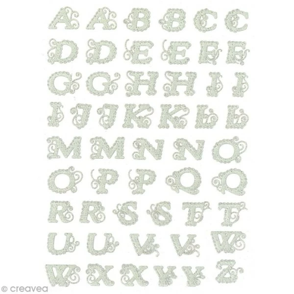 Données techniques pour Stickers dentelle 3D – Alphabet majuscule – 1,2 à 1,7 cm – 52 pcs