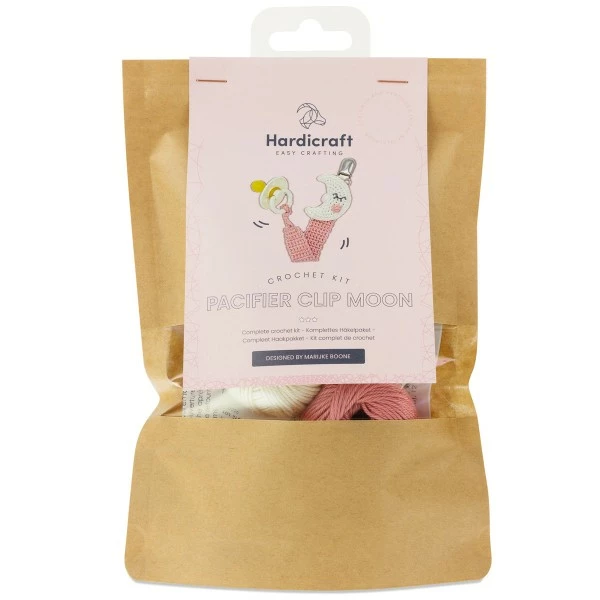 Ce kit Crochet HardiCraft contient tout le matériel nécessaire pour créer un attache tétine en crochetdes pelotes de coton à crocheter, 1 clip à bretelles, des instructions et de la ouate de rembourrage. Il vous suffira d’ajouter le crochet n°2.5 mm pour réaliser votre accessoire pour bébé en crochet.