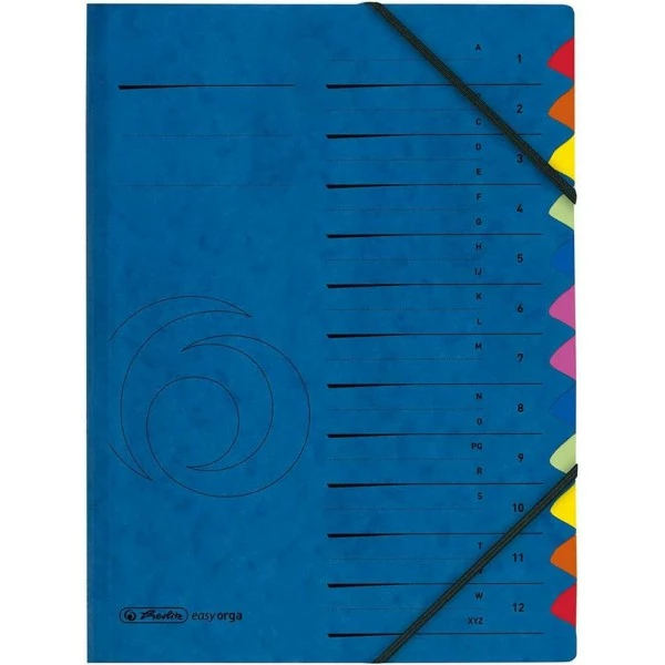 HERLITZ – Trieur en carton – A4 – 12 compartiments – Bleu