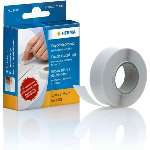 HERMA – Ruban adhésif double-face, 12,5 mm x 12 m – Blanc