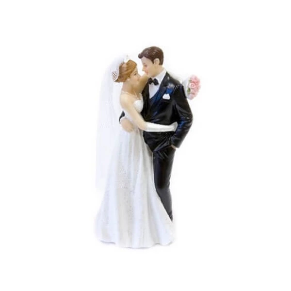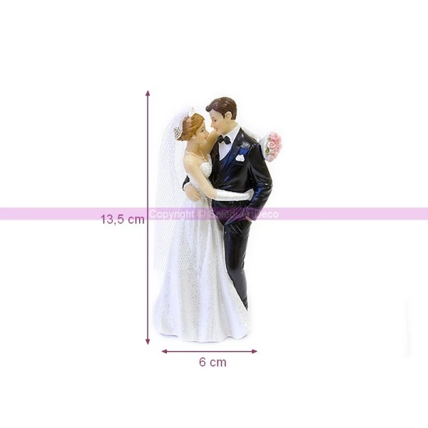 Description de Couple de Mariés dansant la Valse en Résine, hauteur 13,5 cm, figurines pièce montée