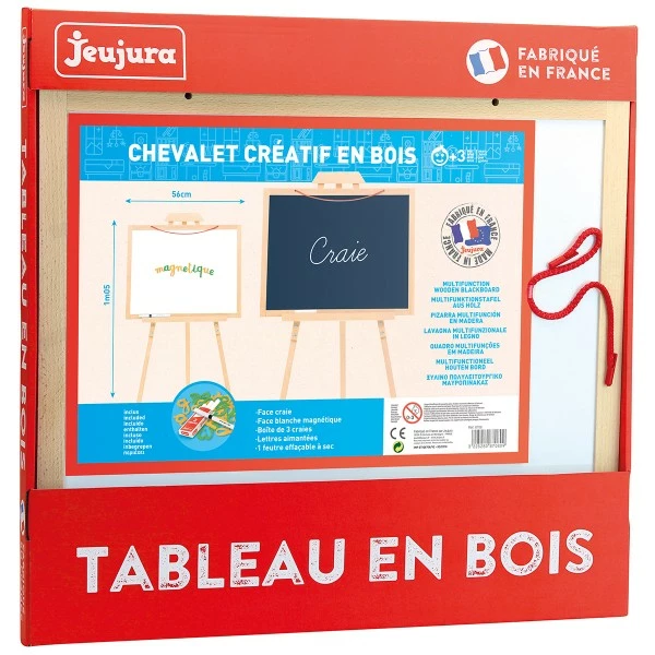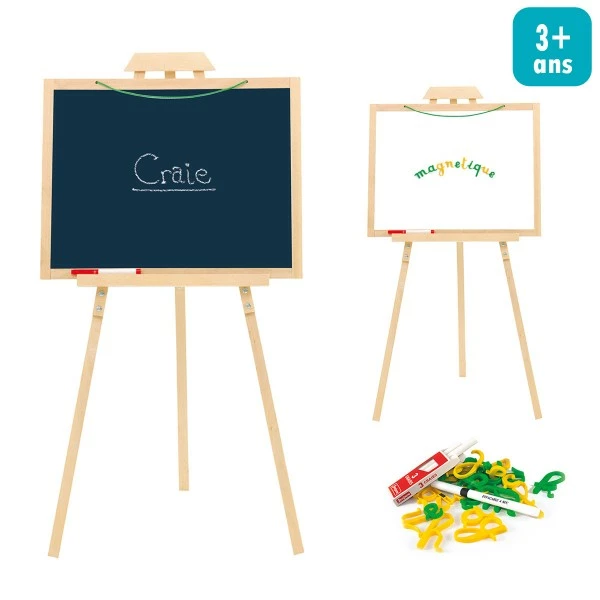 Dès 3 ans, les enfants pourront jouer à des jeux de rôles ou s’entraîner à écrire ou à dessiner. Ce chevalet d’écolier comprend une ardoise réversible de 56 x 43 cm avec une face pour écrire à la craie et une face blanche magnétique pour écrire au marqueur effaçable à sec.
