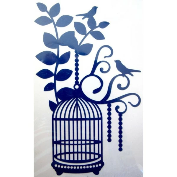Grand gabarit de découpe, très beau motif: oiseaux avec cage et feuillage. Jolis détails.