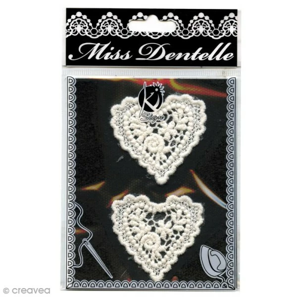 Description de Motif thermocollant dentelle – Coeur – 4,5 cm – 2 pcs