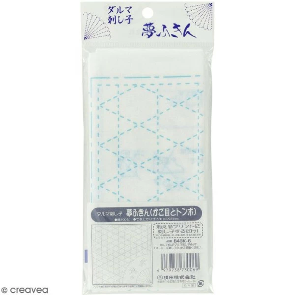 Cette toile de sashiko pré-imprimée vous permettra de réaliser un magnifique motif Kagomé (tresses de panier) et libellules selon la technique de la broderie japonaise aussi appelé Sashiko. Les motifs Kagomé (tresses de panier) et libellules sont déjà dessinés sur la toile Blanche 100 % coton de 31 x 31 cm, il vous suffira donc de choisir une couleur de fil à broder et de suivre le motif pour réaliser un magnifique coupon brodé.