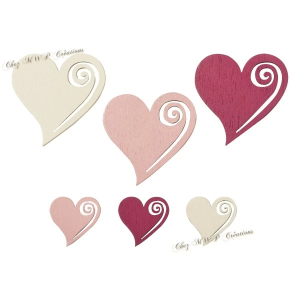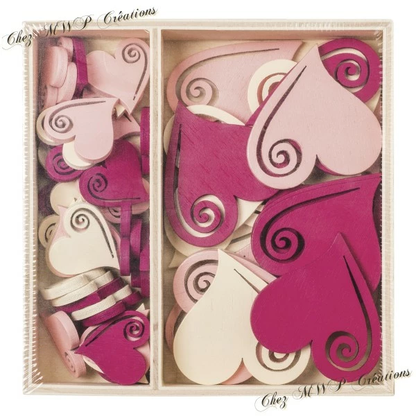 Description de Boite ornements bois Coeurs Romantiques 54pces