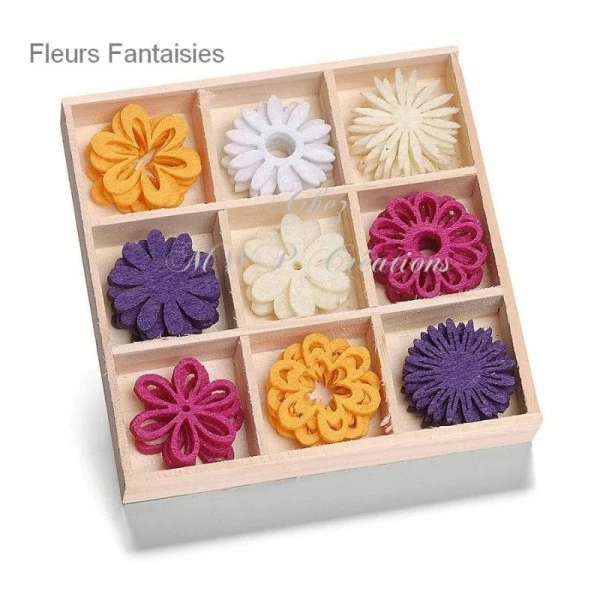 Description de Boite Petits Ornements Feutrine – Nature, Fleurs Et Animaux (Plusieurs Assortiments Disponibles)