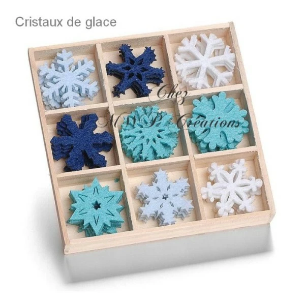 Boite contenant 45 pièces en feutrine d’environ 3cm pour un décor de noël
