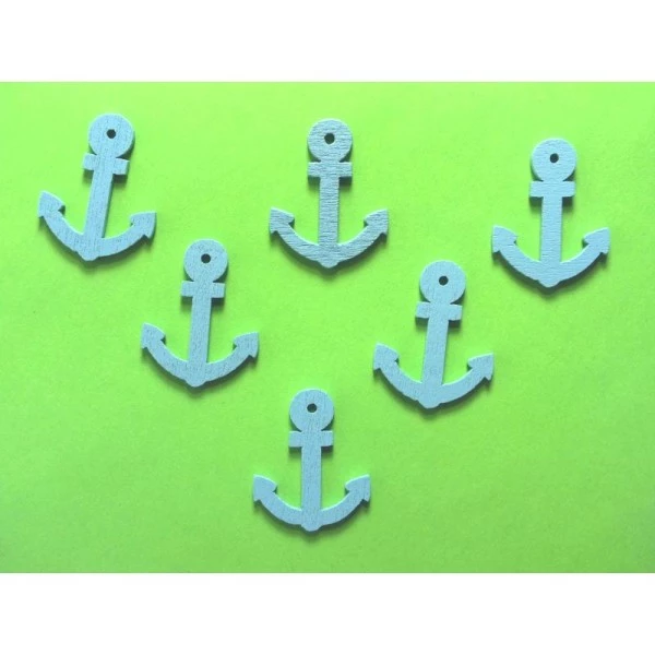 Description de 6 APPLIQUES EMBELLISSEMENTS BOISancre bleu clair 24*20mm