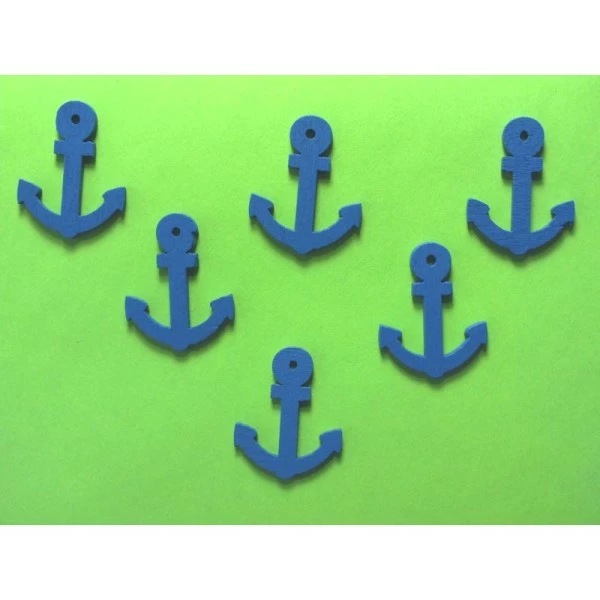 Description de 6 APPLIQUES EMBELLISSEMENTS BOISancre bleu fonçé 24*20mm