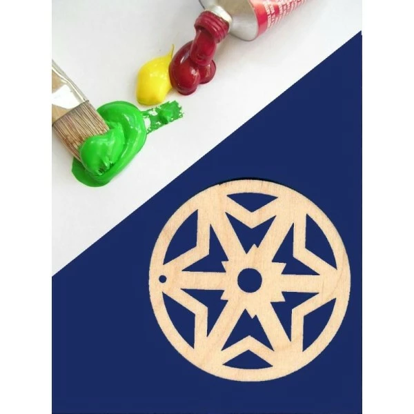 Description de APPLIQUE EN BOIS BALTIQUE CONTREPLAQUE COLLERosace n°2 , 7 cm