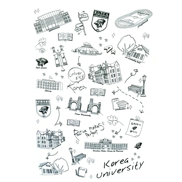 Feuille composée de plus de 20 stickers autocollants, sur le thème de Korea University.