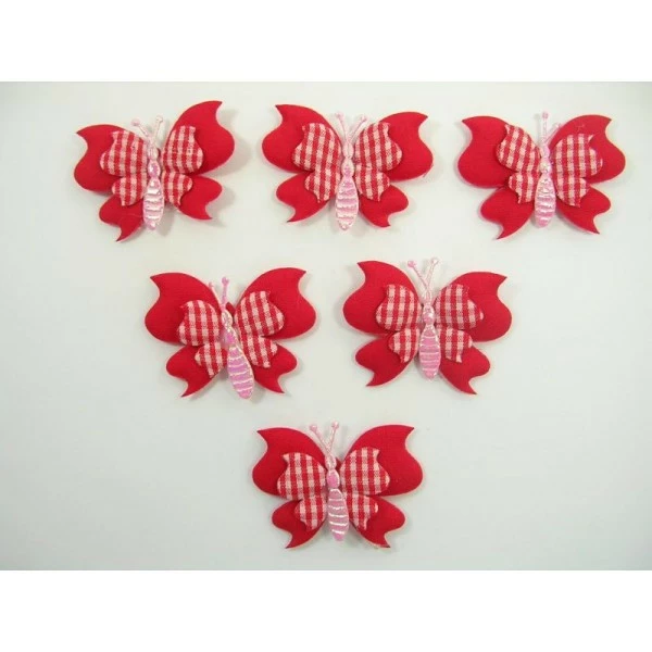 Lot 6 appliques tissus papillon blanc et rouge 45mm