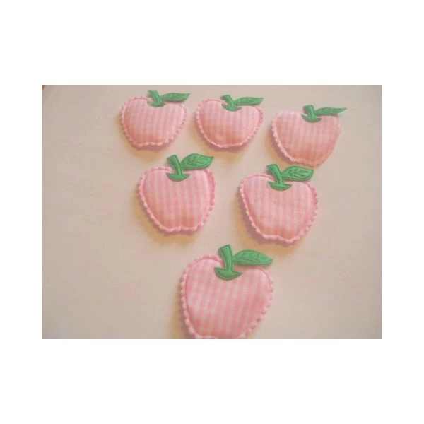 Lot 6 appliques tissus pomme rose/blanche 40mm