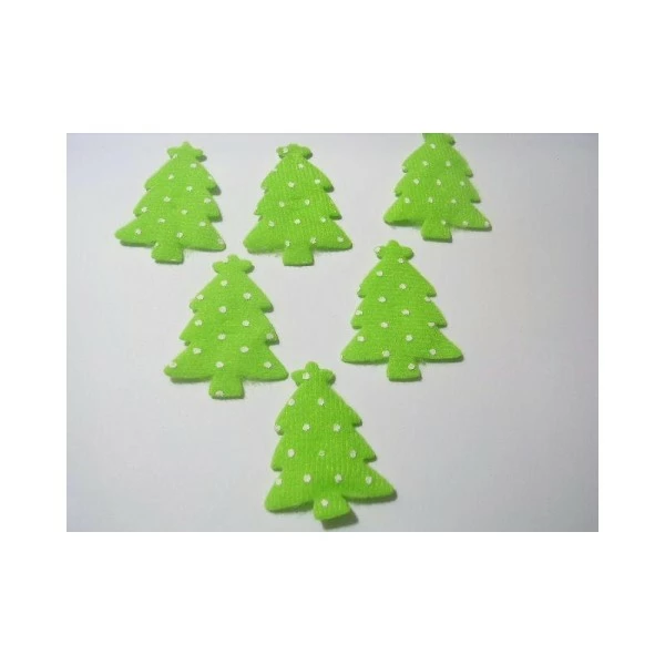 Description de LOT 6 APPLIQUES TISSUS sapin vert/blanc hauteur 48mm