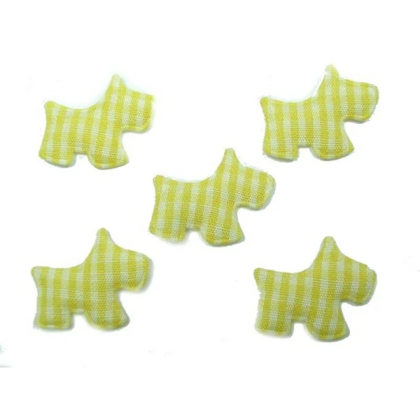 Lot 6 appliques tissus scottie vichy jaune/blanc 25mm