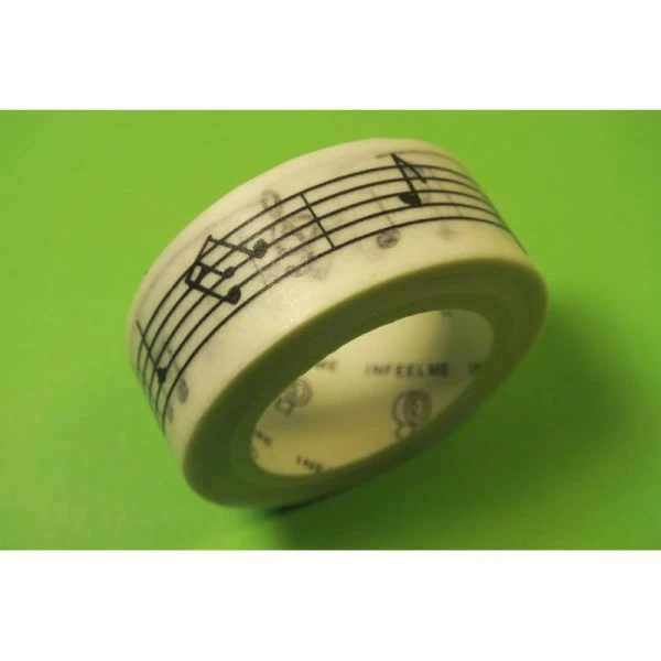 Ruban Washi (masking tape ) 15 mm x 7 m motif portée musicale de couleur noire sur fond blanc