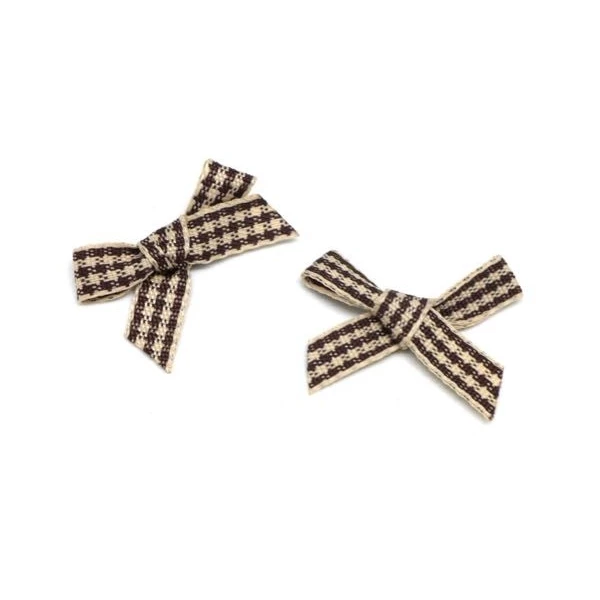 Description de 20 Petits Noeuds Vichy Marron Et Beige En Ruban De 7mm