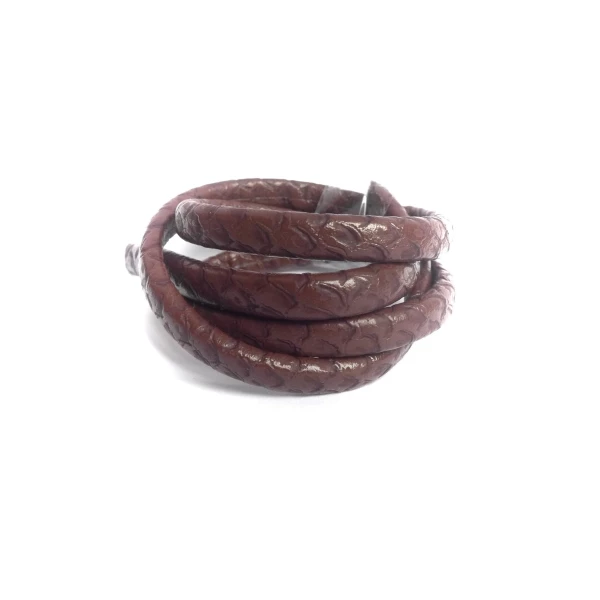 50cm Lanière simili cuir 6mm x 3,3mm de couleur marron foncé impression écaille