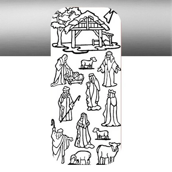 Description de 1 planche de stickers autocollants peel off ARGENT CRECHE DE NOEL 7055
