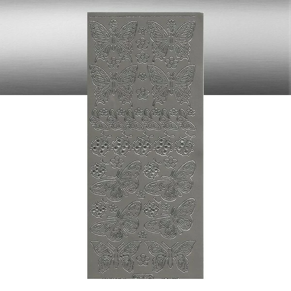 Description de 1 planche de stickers autocollants peel off ARGENT PAPILLON COCCINELLE 818