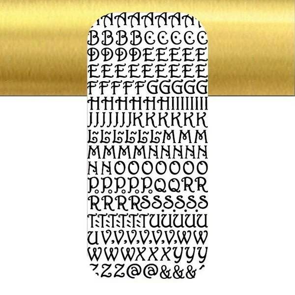 Description de 1 planche de stickers autocollants peel off DORE ALPHABET 1562