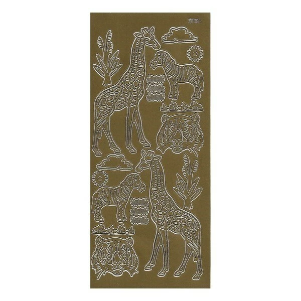 Description de 1 planche de stickers autocollants peel off DORE ANIMAUX SAVANE 064