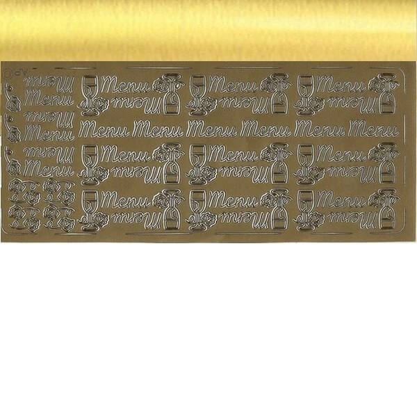 Description de 1 planche de stickers autocollants peel off DORE MENU
