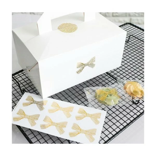 Description de 18 Etiquettes noeuds dorés stickers Noël décoration bougies, emballages