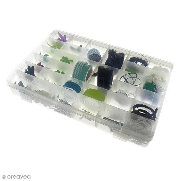 L’info de notre experte produit : Soyez sans craintes si la boîte se retourne vos accessoires ne se mélangent pas ! Pratique à emporter par son format compact, la boîte de rangement plastique de 36 cases, est idéale pour votre atelier de loisirs créatifs !