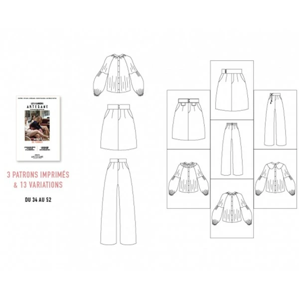 - 3 patrons imprimés du 34 au 52 et 13 variations possibles