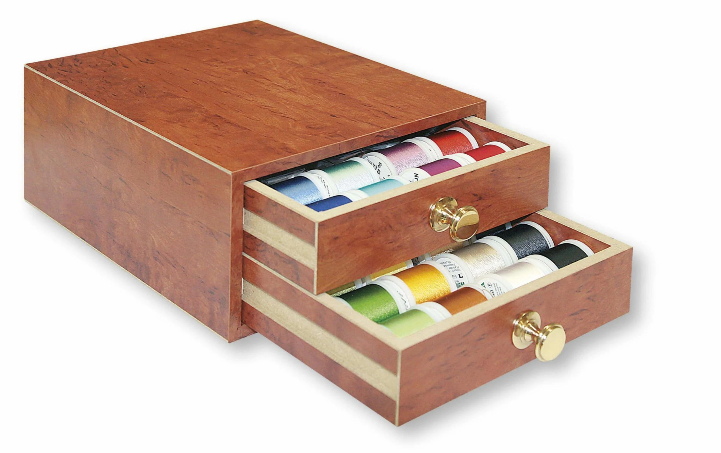 – Boîte à fil exclusive en bois, avec 2 tiroirs amovibles