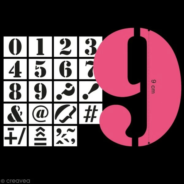 – 9 pochoirs chiffres (de 0 à 9) de 9 cm de hauteur