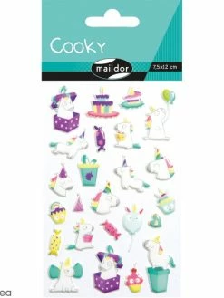 Description de Stickers Fantaisie Cooky – Licorne anniversaire – 1 planche 7,5 x 12 cm