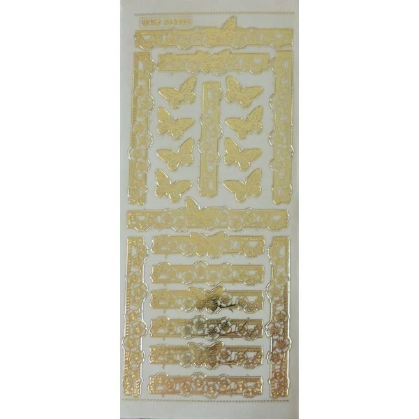 Description de 1 planche de stickers autocollants transparents embossage relief doré DECORATION FLEUR PAPILLON 6528