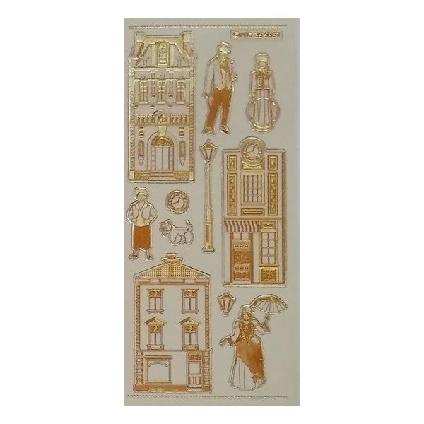 Description de 1 planche de stickers autocollants transparents embossage relief doré RETRO 5961