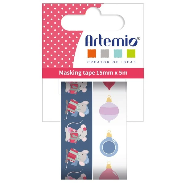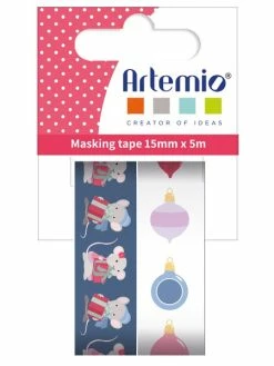 Cet assortiment de 2 rouleaux de Masking Tape Artemio de 1,5 cm de large et de 5 mètres de long chacun, décorera et embellira toutes vos créations. Ce papier adhésif décoratif, repositionnable à l’infini, sur le thème de l’hiver et de Noël, peut être utilisé en scrapbooking et carterie comme en Home Deco.
