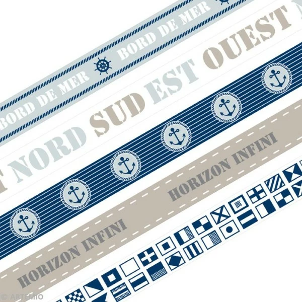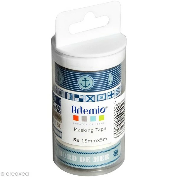 Cet assortiment de 5 rouleaux de Masking Tape Artemio Long Island décorera toutes vos créations. Ce papier adhésif décoratif, repositionnable à l’infini pourra être utilisé en scrapbooking comme en Home Deco.