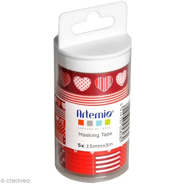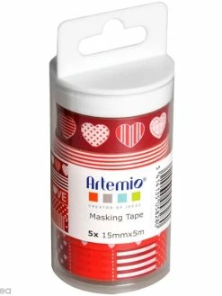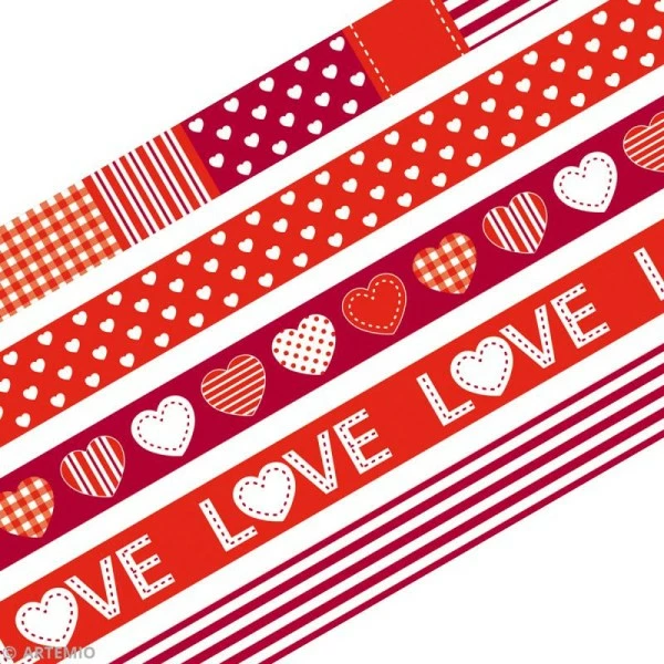 Cet assortiment de 5 rouleaux de Masking Tape Artemio Love rouge décorera toutes vos créations. Ce papier adhésif décoratif, repositionnable à l’infini pourra être utilisé en scrapbooking comme en Home Deco.