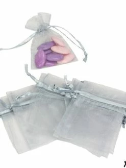Artif Lot De 12 Sachets En Organdi Argenté, Pochons En Organza Pour Dragées, 7,5 Cm X 10 Cm