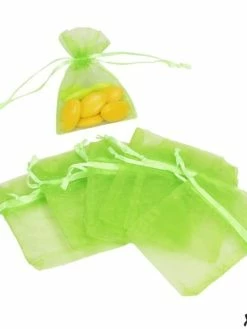 Artif Lot De 12 Sachets En Organdi Vert Clair, Pochons En Organza Pour Dragées, 7,5 Cm X 10 Cm