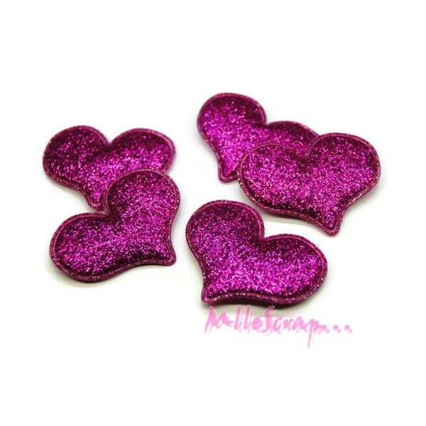 Description de Appliques cœurs tissu glitter rose foncé – 5 pièces