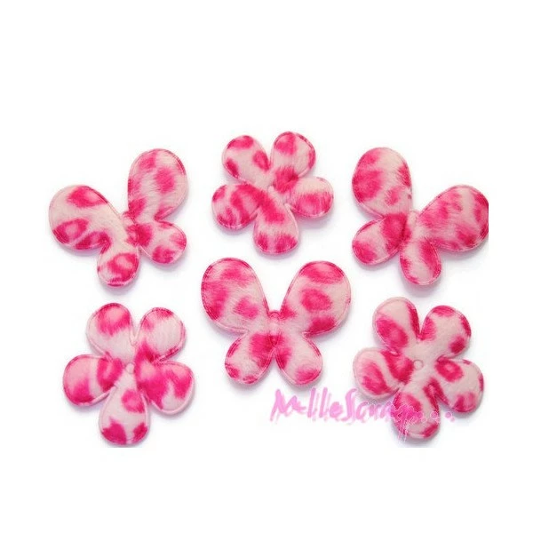Description de Appliques papillons, appliques fleurs tissu rose – 6 pièces
