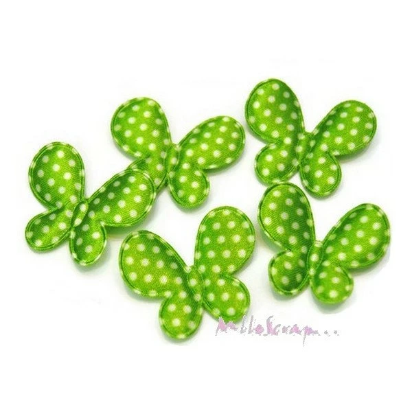 Description de Appliques papillons tissu satin vert – 5 pièces