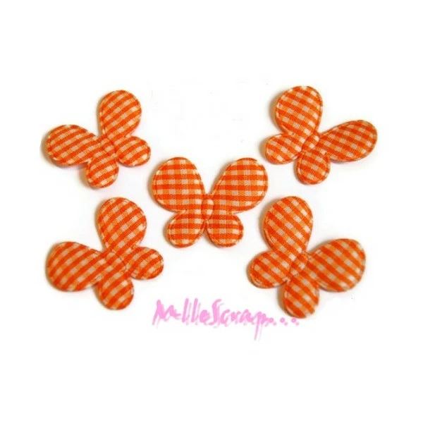Description de Appliques papillons tissu vichy orange – 5 pièces